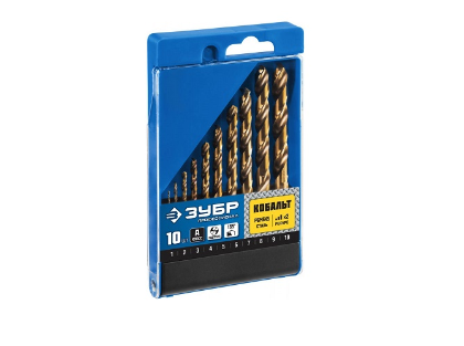 Набор сверл по металлу 10 шт (d=1-10 мм) сталь Р6М5К5, класс А, Зубр "ЭКСПЕРТ"
