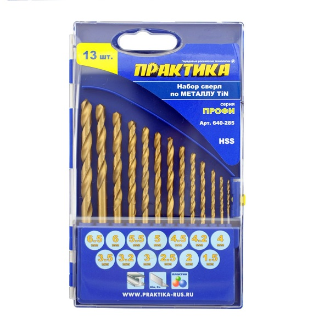 Набор сверл по металлу 13шт.TiN Профи ПРО кассета Практика